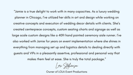 While being a teacher has been a cornerstone of my identity for the majority of my adult life, it hasn't been the only career or passion I’ve pursued. After being discovered, so to speak, by one of the most talented event coordinators in Chicago at LOLA Event Productions, I was hired as an assistant and designer in 2014. Since then I have created countless, uniquely tailored décor pieces, helping to make the most memorable days even more special for clients.